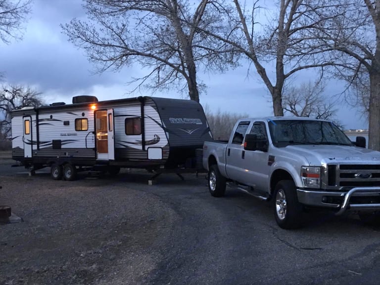 Spacious and very clean family friendly trailer with a large slide, two full bunks, queen in separate master, dinette conversion and fold down sofa. Must have vehicle capable of towing this trailer weight and must have trailer breaks in the tow vehicle. Can supply a equalizer hitch upon request. Fits standard two in receiver. Trailer is a 2 5/16 ball. Can supply a basic generator for an additional $50 per night. Will run lights and fridge and tv. Won’t run ac