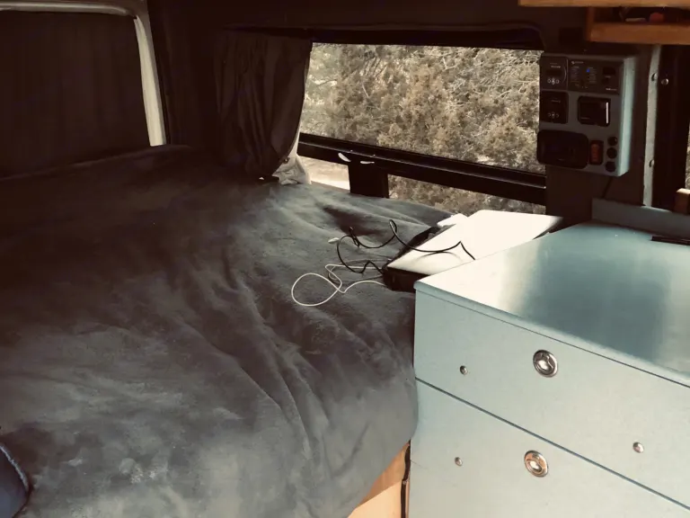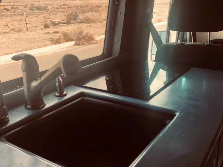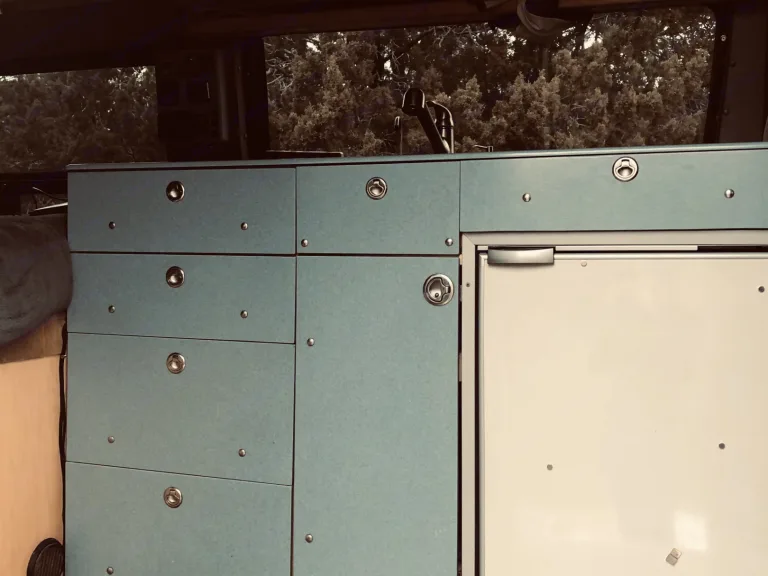 Hand crafted cabinets with deep slide out drawers for a clutter-free trip.