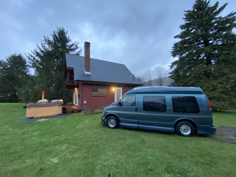 1998 Chevy Express Conversion Van converted early 2020 by me. Features wood sink with electric/rechargeable faucet, 2 burner propane stove, Mr Buddy propane heater, AC/DC fridge, solar with Goal Zero Yeti 1000 Power Station, Car Play stereo with bluetooth, loads of storage, Brand new General Grabber all-terrain tires, ceiling fan, toilet, small bed good enough for 1 person comfortable or 2 people snugly. Bed can be reconfigured on request to make more comfortable for 2. AC currently not functioning but will be fixed in the Summer. What's includedComes with cooking utensils, pots, pans etc. Separate 2 burner cooker for outside use, folding table and 2 folding chairs, small wood burning stove good for when you run out of propane, 5 gallon filtered water with pump, folding shovel, portable battery operated shower, electric generator (for a jump start and extra power and inflating tires). Can supply linens upon request.RecommendationsI've taken this thing upstate NY many times for 2-3 night trips with my girlfriend and just drove it across country to Lake Tahoe over about 3 weeks. It handled pretty well in some extreme snow storms too. Other things to noteSmall dogs are allowed however must be wiped down before entering the van.