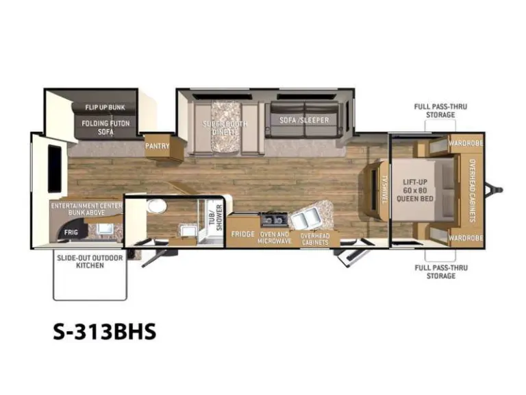Great Travel trailer made to enjoy the camping experience with an entire family can sleep up to 10, bunks in the back, 3 Pull Couches and ample entertainment space to utilize. Private Front Bedroom. Bathroom can also be accessed from the outside!! Great Pass-thru storage which is perfect for all of your outdoor camping gear, and so much more!!
