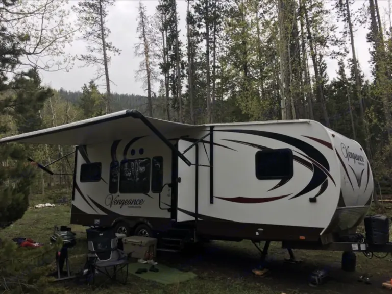 My 2015 Vengeance toyhauler is very nice and cozy inside and out on the patio. plus size queen up front, two bunks and bench seats fold down to a huge bed great for the kiddos. Don’t forget about the storage for the toys.