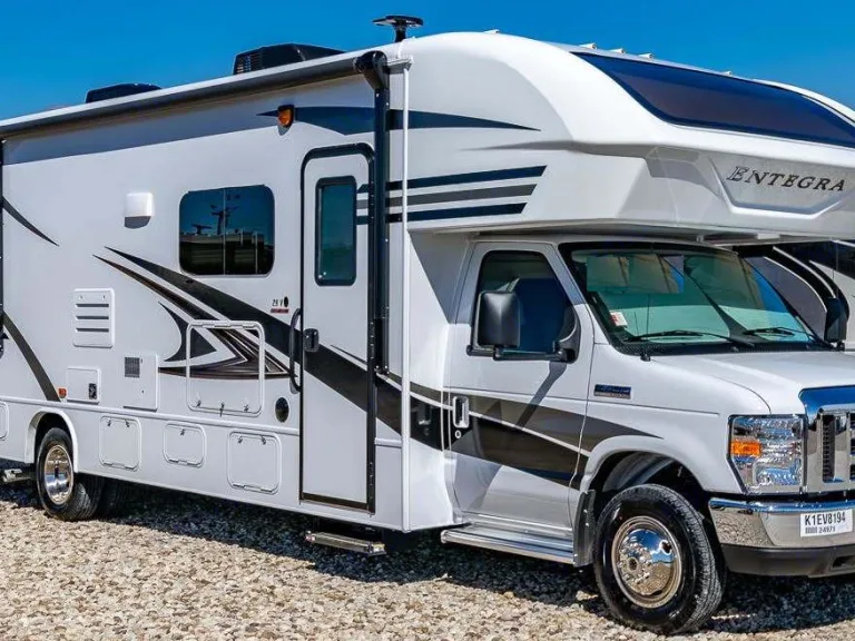Outdoor Flat-screen TVEnjoy the ride and the views as you travel to your next destination in this Luxury Entegra Coach Odyssey Class C Motorhome. This model offers a spacious layout with two slides for added roominess on the interior, plus a beautiful panoramic view out the front window. There are plenty of seating and sleeping options for seven people anytime you travel, and you will enjoy the complete kitchen and bath accommodations for fixing meals and keeping clean and refreshed. The walk-through bathroom inside of this coach is nice for every day living, and the outside shower will allow you to rinse off after a long day of hiking or sightseeing. The 16' electric awning also provides you with a great outdoor living space as you gather around the campfire each evening.When you are ready to hit the road, the Entegra Coach Odyssey motorhome will provide a safe, comfortable, and convenient way to travel. Each Odyssey features a one-piece seamless fiberglass front cap, rear back-up camera and monitor, and an interior command center. For your comfort and safety there are seat belts installed in each seating position, driver and passenger air bags, as well as power anti-lock brakes. You will certainly enjoy all of the storage options that the Odyssey has to offer, like the lighted pass-through storage compartment and under-the-bed storage. Whether your trip is planned or spur of the moment, the Odyssey will always make it an enjoyable one.