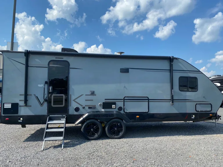 Pack your bags for a fun weekend getaway to the lake in this Evoke travel trailer. Your family will love the space you have thanks to the large slide out and here you'll find a u-shaped dinette that is great for meal times, game night, and additional sleeping space. The chef of the family can prepare breakfast inside on the three burner range or outdoors on the outside kitchen that includes a refrigerator and stove. After a day of hiking or biking, you'll appreciate the rear bath to clean up before bed. Mom and dad will love the front private bedroom with a True king bed, dual night stands and slider windows to let the summer evening breeze in. The trailer only has one bed, but the dinette can be converted to a bed.What's includedPlates, silverware, body wash, shampoo, conditioner, cooking utensils, pots, pans, paper plates, rug, entry mat, leveling blocksOther things to noteInsurance must be purchased through outdoorsy and you must be verified to rent trailer. No pets please. You must have a vehicle capable of towing 7500 lbs and a trailer brake to rent this trailer safely.