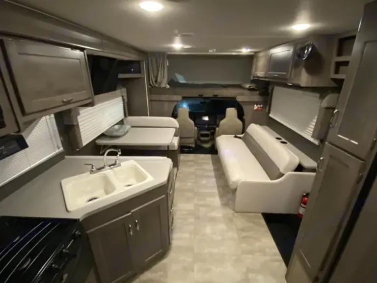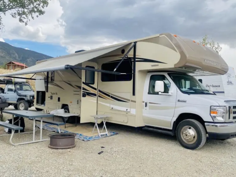 The Winnebago Spirit is the Ultimate Family Truckster! This machine is the perfect vehicle to take your family and friends across the country, or even just to your favorite sporting event. With a King bed above the cab, a walkaround Queen in the main bedroom with bunk beds, and a couch and kitchenette pull out, this bad boy can sleep 9 adults comfortably. The Luxury continues into the kitchen with a microwave, 3-burner range top with oven, a 2-door refrigerator/freezer. The Powered Patio awning with LED lights and the tailgate package equipped with an outdoor TV and stereo system and beer fridge makes it easy to keep the party going into the night. The Spirit is built to the legendary standards of Winnebago Super Structure Construction design. Its a process developed and refined over more than 50 years of building some of the strongest, most durable coaches in the industry. And with the E450 Chassis and 305 HP Triton V10 Engine, TorqShift 6-speed automatic transmission w/Overdrive, and break assist you can pull up to 5,000 LB up the toughest mountain passes and feel completely safe going down the steepest grade. The Spirt is made for Boondocking and campground camping with a 44-gallon freshwater tank, 4,000-watt Cummings Onan Microquiet generator, 2 Deep-cycle batteries, and the 30,000 BTU Furnance/ AC you can stay cool and comfortable completely off the grid.What's includedCamping Table, Outdoor carpet, Cookware, Paper Plates, Plastic UtensilsOther things to note[URL removed]