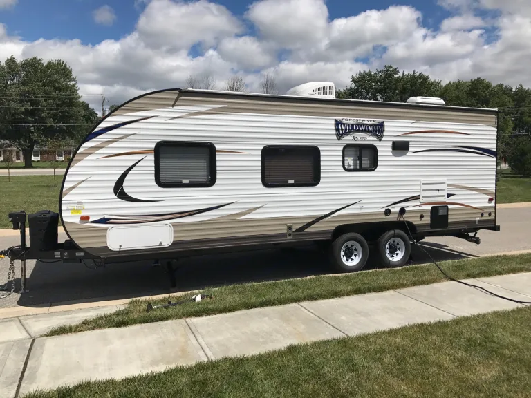 03/22/2025Cleanliness: Please note we have received a couple of comments about the cleanliness of the RV. The RV is guaranteed to be lysoled and cleaned prior to your departure. I cannot guarantee there will not be dust that accumulates in some areas or during the towing process. It is very easy for dust to accumulate in these travel trailers. This is a camper, not a bed and breakfast, please tailor your expectations as to such.Delivery Update: Please check your campsite before I deliver. I do not deliver to sites that take 20 minutes to back into due to trees or etc crowding the site.Indulge yourself in a RV that has all the things you'd want from home in the convenience of an RV. Fridge, freezer, oven, stove, leather seating, Power awning, power jacks, outdoor speakers, 32" TV, Blue LED lighting underneath the RV for the night, Awning lights, Glass enclosed shower, and so much more! Has a queen bed that can sleep 2 adults, a leather sofa that turns into a bed that can sleep 1 adult or 2 small children, and a dinette area that turns into a sleeper that can hold 1 adult or two small children.We include extra amenities free of charge such as: