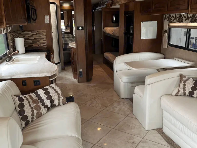 Gentlemen, start your engines, it's time to make memories! The Rolling Coachman is a great way to enjoy time with family and friends at a local event or on the open road! The Rolling Coachman is a 39' Diesel Coach that is newly remodeled and ready for adventure. Whether you are coming to town and need a place to stay at a local campground or plan to take it on your next trip, this coach has everything you need. The master bedroom has a Sleep Number King sized bed, plenty of closet space and TV/DVD player. The bunk area features doors that close off to create their own room and provide privacy as well as a TV/DVD player with each bunk. The bathroom, kitchen, and living area are extremely spacious and offer extra sleeping options on both pull out couches and fold down table. We would love to come and set this up for you at your next sporting event, campground of your choice, music venue, or deliver it for your next adventure! What's includedJust add food, clothes and beverages and you are ready to roll as this comes fully equipped with linens, cookware, games, outdoor grill, chairs, etc.!Other things to noteExtremely clean and spacious!