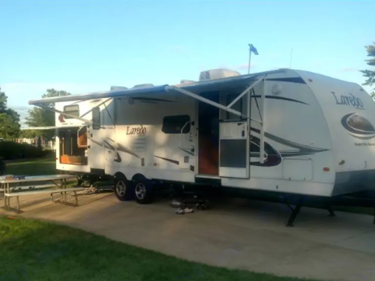 Travel Trailer sleeps 10. Full indoor kitchen plus outdoor. TV and DVD for stormy nights. Awning and electrical outside. All electric stabilizers and hitch. A/C and heat great for all seasons. Arctic Package for cold weather camping. Completely self contained for boondocking. Generator Available. Ask about delivery and set up.
