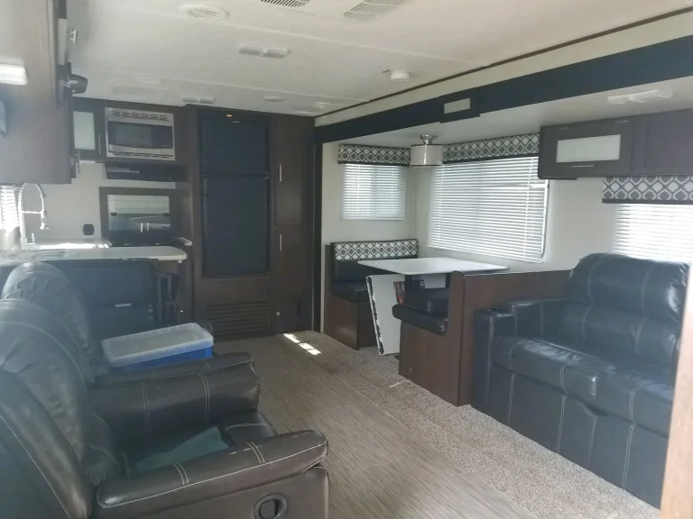 I Rent MY Trailer OUT TO LET Others Enjoy What I Have Experienced With Owning A Trailer. I Have Furnished IT With ALL THE Amenities From Home, ALL YOU Need IS Clothes AND Food. I Have A Grill FOR Outside Cooking, A Cooler AND A Canopy Tent With A MAT FOR YOU Comfort. I Have TWO Gravity Lounge Chairs, AND Extra Table FOR Cooking With A George Foreman Grill, Enough Light TO Light UP Your Camping Area, AND A BUG Zapper FOR Outdoors. Inside HAS Everything Coffee Maker With Cups, Griddle With Toaster Oven, ICE Maker, Glass Plates, Utensils, POT & PAN, Glasses. Also Plastic Ware IF YOU DON'T Want TO DO Dishes ON Your Trip. I Have Linen FOR ALL Three Beds, That I Wash After Every Rental, Alarm Clock, Clothes Hanger AND 32" TV With A Fire Stick IN THE Master Bedroom. IN THE Bathroom I Have ALL THE Personal Hygiene Products, Toothbrush, Toothpaste, Dental Floss, Mouthwash, Body Wash FOR HIM & HER, Deodorant, First AID KIT, BUG Repellent, EYE Drops, SUN TAN Lotion, SUN Burn Repair. Feminine Product AND Wipes. THE Living Area IS Just AS Nice IT HAS 2 Lazy BOY Recliners, Love Seat Sleeper With Storage, Dinette Sleeper With Underneath Storage Compartment, Refrigerator AND Stove W/ Oven, 55" TV Screen With Fire Stick, AND 100'S OF Movies TO View ON THE DVD Players, Inside AND Outside Music, Plenty OF Game That I Have Provided.