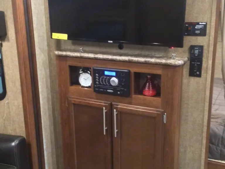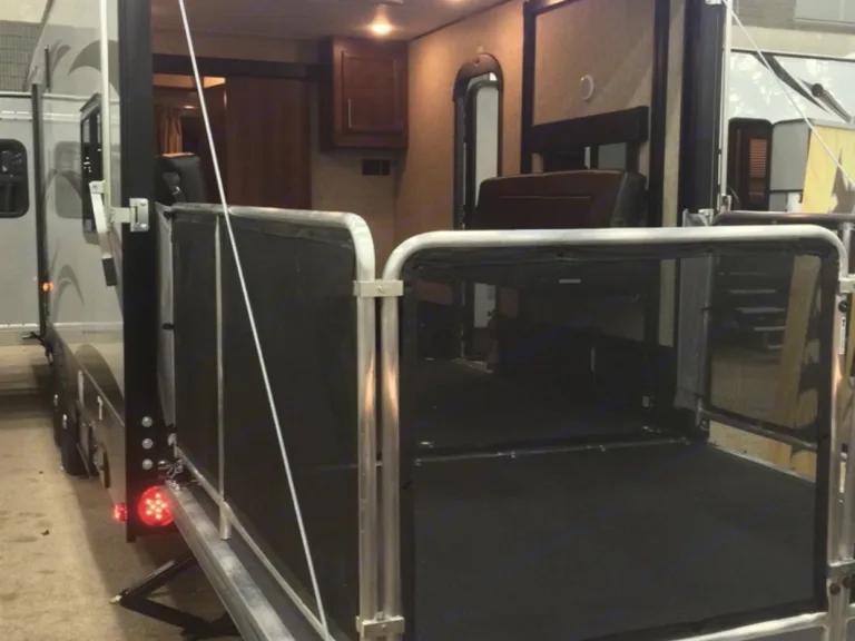 Nice toyhauler! Roomy garage, queen bed up front, full bed/2 couches in garage... recliners in front room... tv, stereo, electric retractable awning, one slide... ability to heat/cool the front, back, or both... back door lays out into a patio!
