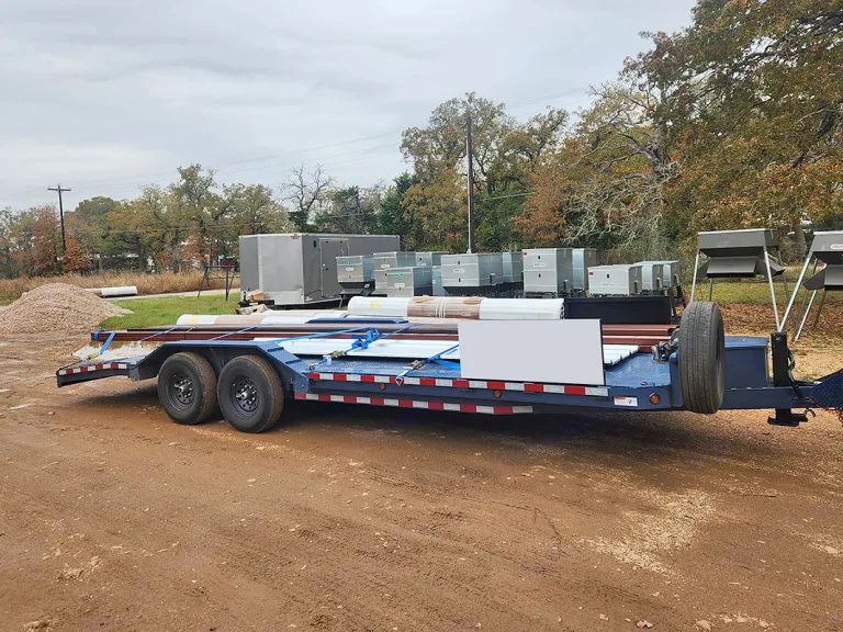 24ft Steel Deck 102" Wide20+4ft dovetail for easy loading14k axles8 Heavy Duty Straps4 Axle Straps12k Warn Winch with wireless controllerSteel RampsBottle Jack, Tire Iron, Jumper Cables, Flashlight, Gloves#11,000 LBS Capacity2 5/16 Ball Required7 pin electrical connectorWhat's includedWinch, Straps, Ramps, Tools