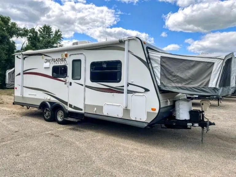 Enjoy the outdoors with the comfort of our Jayco Featherlight hybrid camper! This spacious unit features three queen-size pull-out beds and a slide-out dinette, perfect for families or groups. A generator is available for an additional $25 per night if you're camping off-grid.The camper comes stocked with a few basics to get you started:Keurig coffee makerA couple of cooking knivesPaper plates, disposable silverwarePizza pan & pizza cutter4 guest shower towelsHand soap & dish soapPlease bring your own linens and pillows.Ready for your next adventure? We’ve got the setup—just bring your sense of fun!Other things to noteNo smoking in the camper at all.