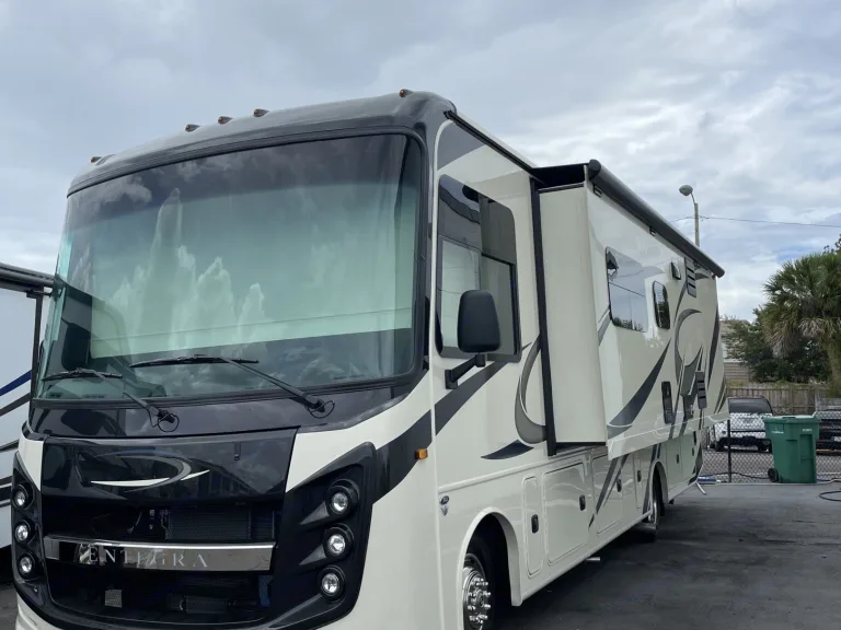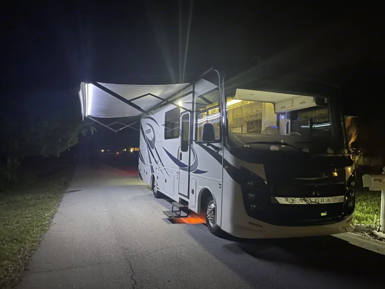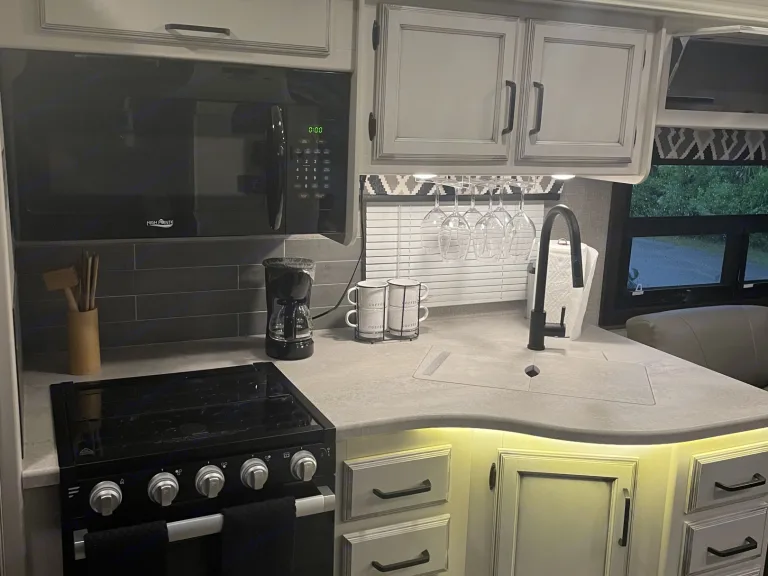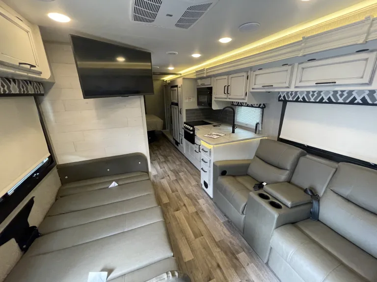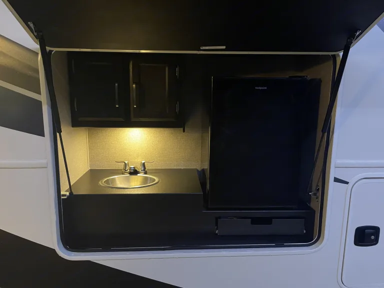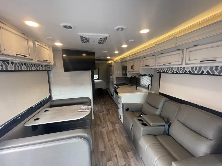 This is a brand new coach class A. Very easy to drive. One huge slide out and a lot of room inside. Comes with 8 beach chairs, propane bbq and also a charcoal bbq, outside 2 burner electric stove. The rv has an outside kitchen with a small fridge and a sink. Its also has outside entertainment with a tv and outside speakers. It is set up for a great camping trip. What's includedAll kitchen supplies