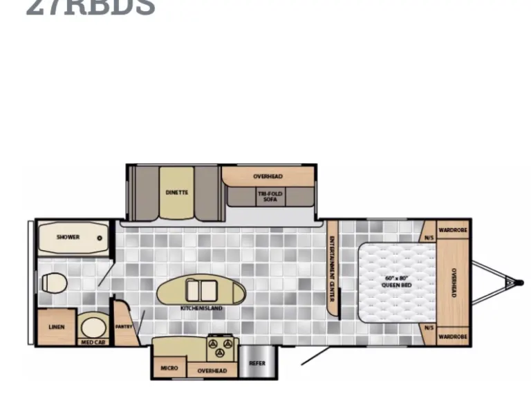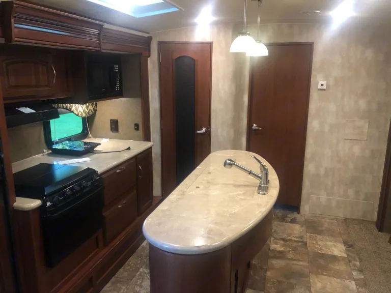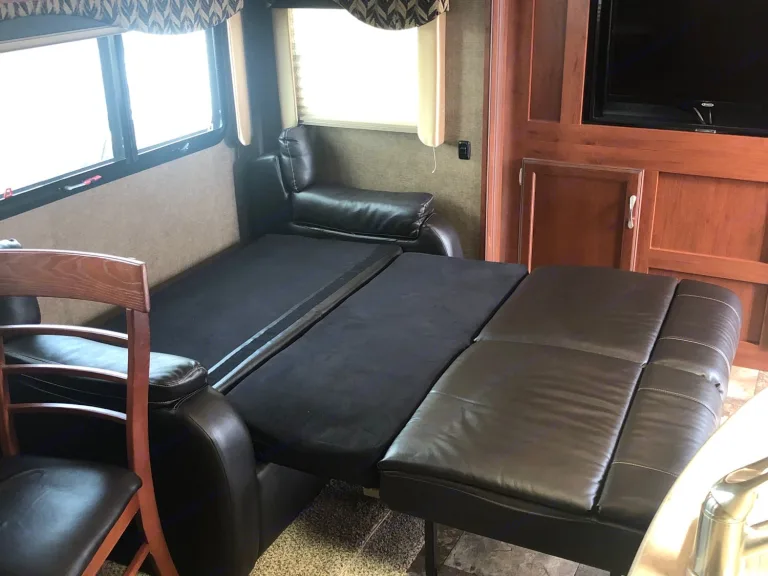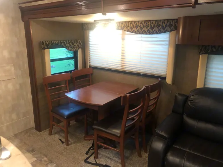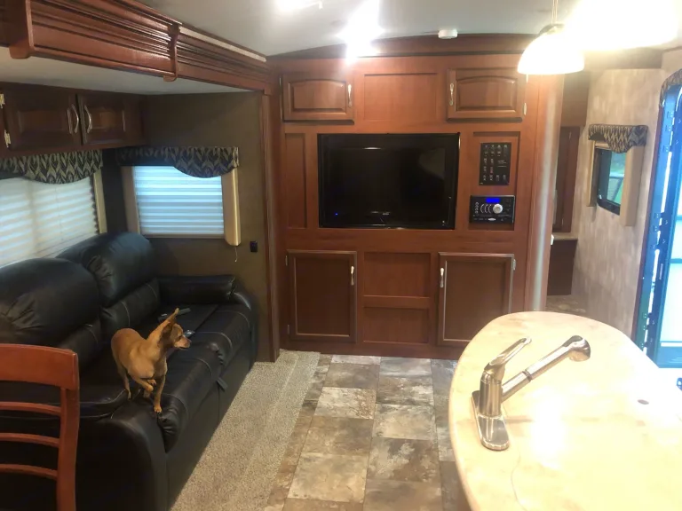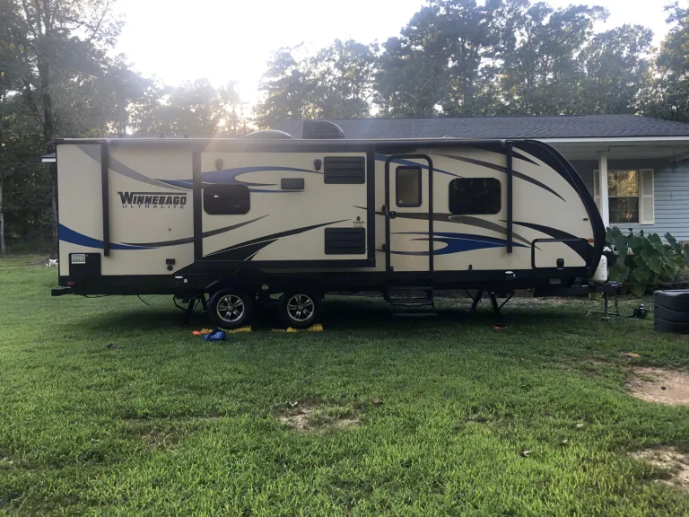 2015 Bumper Pull Winnebago Ultralight. The camper has 2 slides, it has queen bedroom upfront and couch that makes a bed. There is a nice Kitchen also large bathroom. It has a tv that rotates to the bedroom, there is an antenna for the tv, Roku, hot spot, DVD player and Bluetooth speakers.