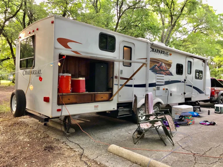 Very roomy with all the amenities you will need! Great bunkhouse for the kiddos with 4 beds separated by curtain. Outdoor kitchen with sink and fridge for the drinks!!! 7 beds total I only off delivery and set up at this time.