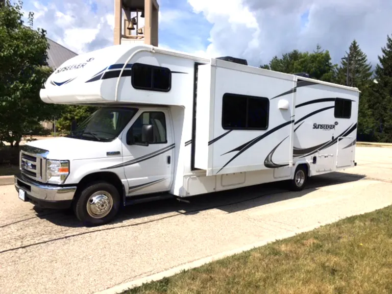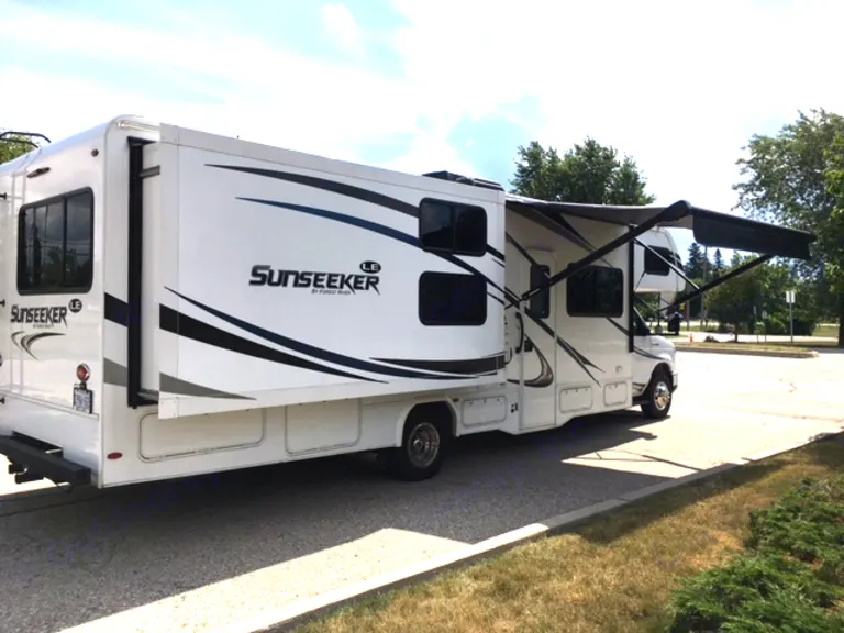 Experience the ultimate RV adventure with our 2019 Forest River 3250LE, lovingly nicknamed "Sunny". This top-of-the-line motor home is impeccably maintained and offers unbeatable safety and reliability for your peace of mind. With 130Km included with every day rented, as well as the use of the awning, you'll have everything you need for an unforgettable camping trip.Sunny is the perfect choice for families, with two queen size beds (one over the cab and the other in the main bedroom), *twin bunks (top bunk for a child and bottom bunk for an adult), a *dinette that folds down to sleep two, and a *sofa that can also sleep two. Plus, there's a microwave, 8´ cubic fridge with a freezer, A/C & heat, and a generator to keep you comfortable no matter where you go. And with two entertainment systems, you'll never be bored on the road.Driving Sunny is a breeze with the Ford E450 Econoline engine that uses regular gas, and with only a normal G class driver's license required, you'll be on the road in no time. Sunny has full 30amp electrical hookups for shore power, as well as city water and sewage hookups. And with a large 4.0KW generator, you'll have all the power you need for your electrical needs when dry camping.Before booking, please consider whether anyone in your group is able to drive a vehicle of this size, and whether your campsite has the necessary accommodations for a 32 ft motor home. And if you have more than 8 passengers, you may need to consider driving another vehicle to accommodate the extra travelers. Travelling with infants or toddlers will require special attention to the RV seat beats and your child's car seats compatibility with them.