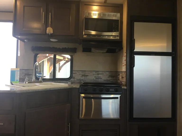 Big and awesome; easy to set up and big enough to sleep up to 10 comfortably.Outside kitchen, fridge and wash station. Even has an outdoor shower to keep the dirt out of the trailer. One large pop out and easy to set up and move if needed. Have two sets of bunks so 4 beds in the back, queen up front, pull out coach and dining room table converts to a bed.Unit can not go into Mexico.“As for what is included”Propane you must top off or pay 30 bucks.As for kitchen we have camping style plates and bowls some cups for coffee, real silverware and soap to wash. I have garbage cans but not bags in the camper. Board games and outside chairs if you break a chair fee is 20 bucks.