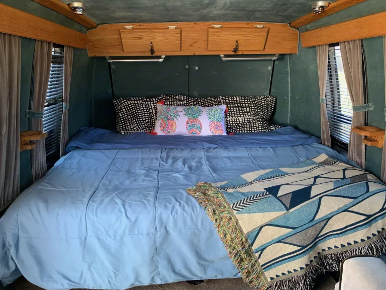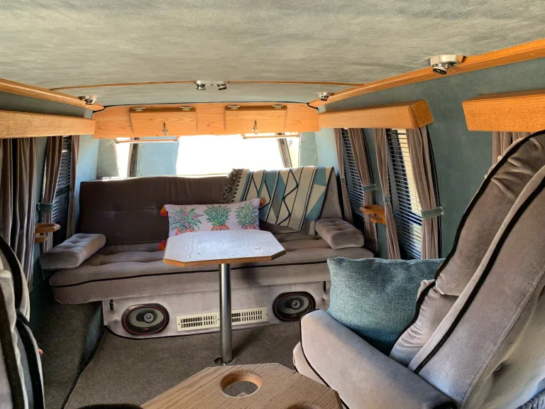 What's includedVan Pablo comes with 3 captain's seats and a back bench, making it a comfortable and safe way to transport 6 people. Two tables can be erected for a game of cards or dinner. The back bench easily converts down into a bed without the hassle of having to rearrange everything. Everything you need to have the best time road tripping and camping is included (bedding, towels, camping chairs, hatchet, cooktop, cooler (plug in available upon request), dishes, pots, pans and utensils).
