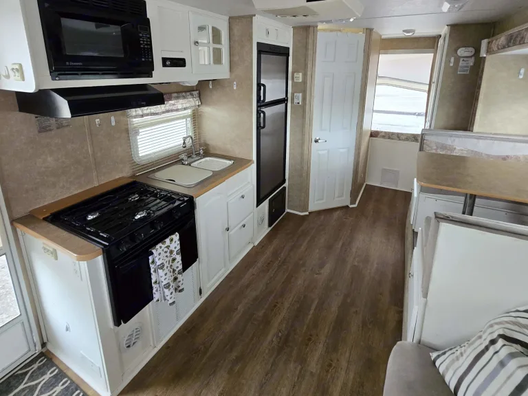 Very spacious, easy to pull, and easy to setup Hybrid Travel Trailer for 6-8 guests (4 adults comfortably and 2 shorter adults/4 small kids (on dinette and sofabed)). Very family friendly.