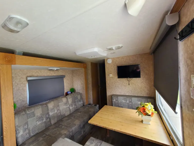Inside, you'll find a spacious, comfortable living area with a fully equipped kitchen, dining area, and entertainment systems. The sleeping quarters are cozy and inviting, ensuring you'll have a restful night's sleep after a day of adventure.Take advantage of the freedom to explore the great outdoors at your own pace while enjoying the comforts of home. With delivery and pet-friendly options, our trailer rental is the perfect choice for your next adventure.