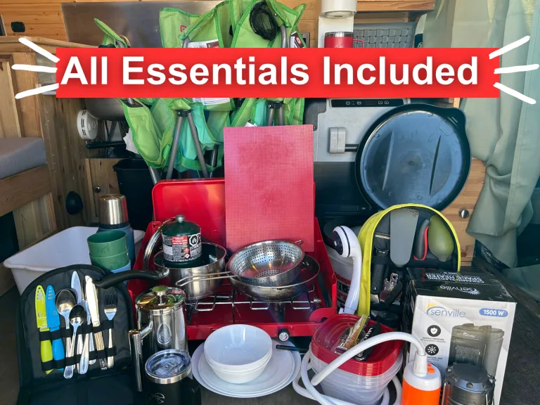 Our 100AH lithium battery bank with 350W solar panel means full autonomy for weeks of off-grid living—perfect for exploring the Rockies with all the energy you need.Everything Included (No Hidden Fees)