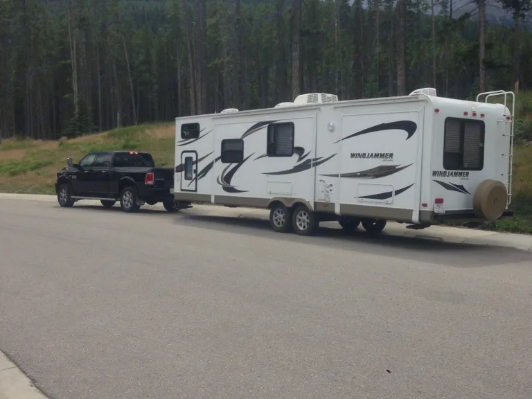 It has two slide outs, two bedrooms including master bedroom, full kitchen, full bathroom with tub/shower, air conditioning, two fridges, four tv’s plus a nice selection of DVD’s, power awning, outdoor kitchen, plenty of storage, gas generator and ice maker. It sleeps nine comfortably. The best feature is the V-nose design making it more aerodynamic costing less fuel to tow. It can be towed with a half ton pickup as I will provide an equalizer hitch to balance the load. Check out my available add ons which include my 2014 Dodge Ram 3500 fully loaded.