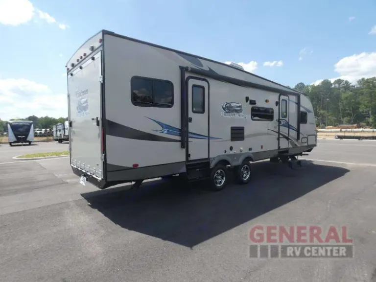 Check out this 301Blds Freedom Express toy hauler travel trailer by Coachmen RV. It has a rear ramp door for easy loading into a 10' garage space. Inside the cargo area you will find plenty of overhead cabinetry for storage plus a TV overhead cabinet as well. There are two fold down sofas with a removable table between. There is also a convenient cargo side entry door. Step inside the main living area which features a large u-shaped dinette slide. Directly across the room is the complete kitchen featuring a refrigerator, 3 burner range with microwave, and double kitchen sink. There is also an entertainment center that can be viewed easily from the dinette. Up front there is a comfortable queen bed with overhead storage cabinet and side wardrobe. The bath is nearby with a private toilet and tub/shower area and separate sink just outside the bath door. You will find plenty of storage throughout the interior with a pantry, and several convenient overhead storage cabinets. For all of your outdoor gear there is a front pass-thru storage compartment and so much more!What's includedHitch, weight distribution system, potable water hose, 30Amp power cable with 15 Amp adapter, black water hose.