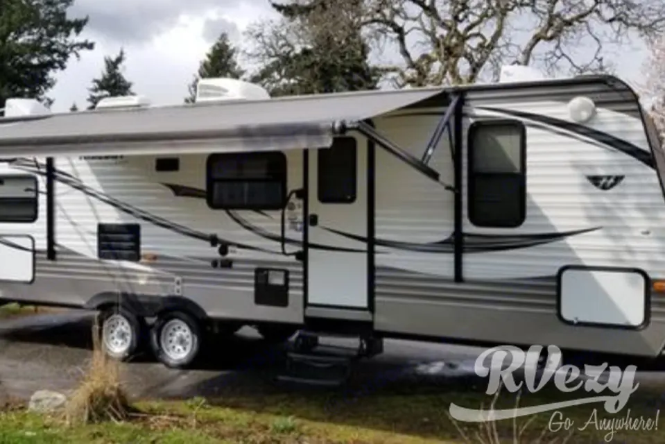 This is a very comfortable trailer, plenty of space inside with the large slide out. The outdoor kitchen is great for cooking all meals and entertaining company. The large bunk beds for kids are a hit! The dining room table and couch in the living room both fold down to double beds so this unit sleeps 8 very comfortably. Double master bed with extra foam on the mattress for a super comfy sleep. The A/C is awesome for those hot summer days (need 30 amp electrical hook up to use this) and when the weather isn't co-operating the furnace is excellent all controlled with an indoor thermostat. The unit is outfitted for 4 season camping with a winter package which includes extra insulation, more powerful furnace and upgraded water tank and heater. Large fridge and freezer and outdoor fridge in the outdoor kitchen. Pantry with lots of room for dry storage as well as extra storage at the front of the unit. Tub/shower and sink in the bathroom, there is also an outdoor shower to deal with sandy feet.Owner is able to tow unit to campsite, set up and give instructions if required and is Super friendly and very handy to help with any concerns.