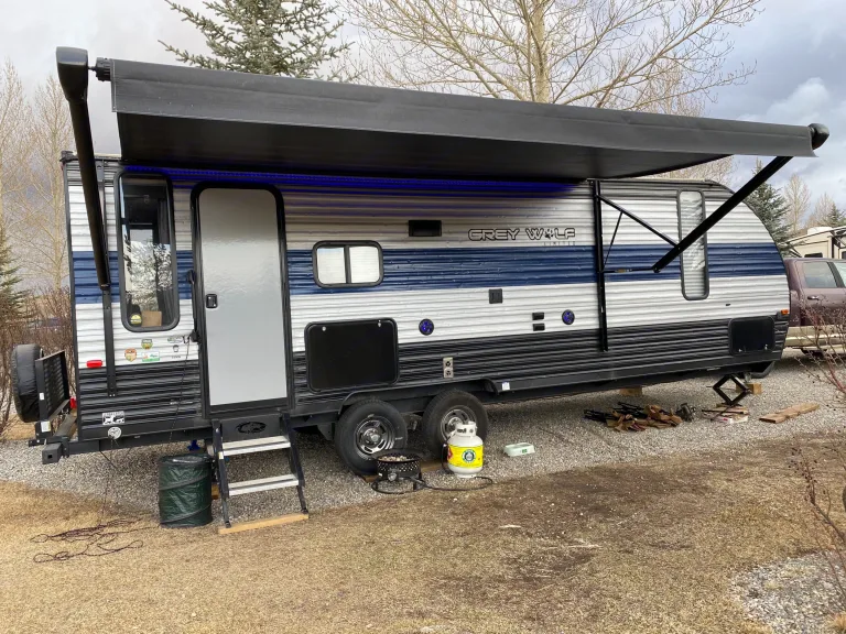 Our travel trailer is a luxury cabin on wheels with all the comforts you need to have a wonderful memory making vacation. It is a 23-foot trailer that sleeps 6 comfortably. Some of the amazing features that led us to choose our “cabin” are as follows; a great kitchen with a large fridge, gas stove, microwave and an additional mini outdoor kitchen with small fridge, ice-maker and taps to fill the ice-maker, A/C, force flow heat and a 1500w electric fireplace, a good size bathroom with a shower that is bigger than most trailers, a master bedroom with a new queen plush memory foam topped mattress, and there is a TV with DVD player if you like to have a movie to fall asleep to, there is a 32” Roku smart TV in the main living area that can also be hung outside for movie night or bring your Nintendo switch and play some Mario Kart, there is also a Bluetooth stereo you can connect to with speaker inside and outside the trailer, the awning has blue LED lights to help prevent the bugs from being attracted to the trailer, and a large solar panel that helps keep those batteries charged. There are so many features, it is hard to list them all.
