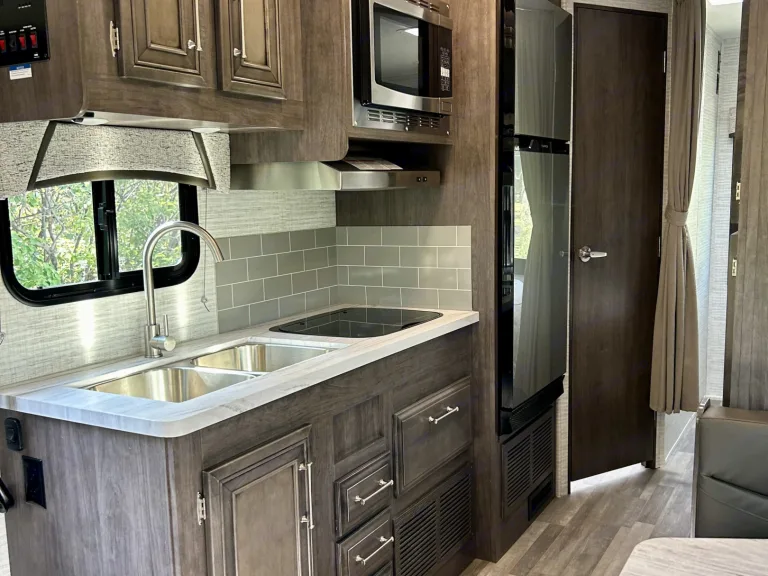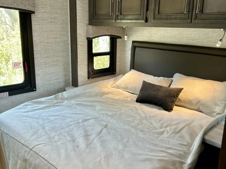 Convertible Dinette – Easily transforms into an additional bedKEY Features:Panoramic Front Cap Window – Drift off under the stars200W Solar Panel – Stay powered up OFF Grid !Gas Stove – Cook like a pro, wherever you parkSlide-Out – Expands the living space with the push of a buttonTV with Bluetooth Speakers indoor and outdoor – entertainment made easyOutdoor Awning with LED Lights – Create the perfect camp vibeOutdoor Shower – Rinse off after your day in natureAuto Leveling System – Set up camp in minutes, no manual work!Microwave – Quick meals made simpleHeated Holding Tanks – Stay warm and functional in any weatherALL bedding AND kitchen supplies are included!Travel Light – We’ve Got You CoveredYou only need to bring your clothes, food, and sense of adventure.
