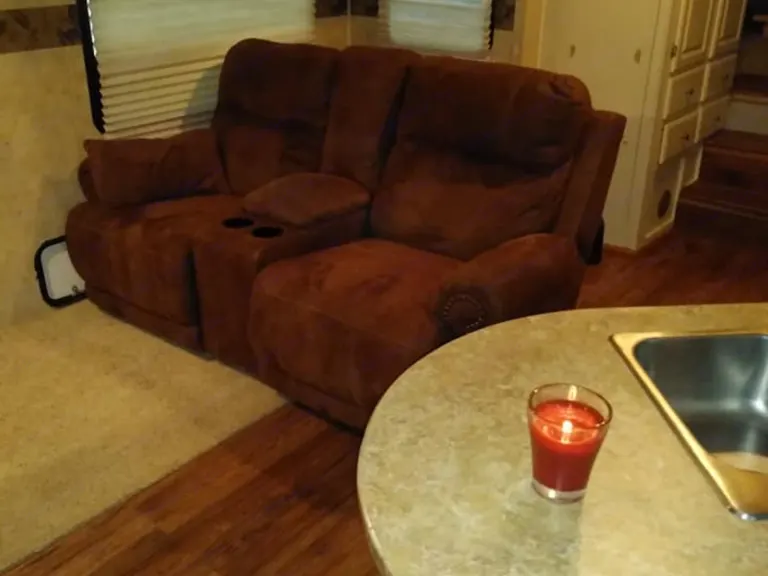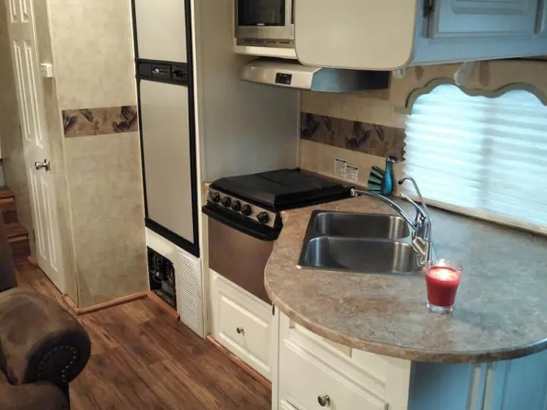 Perfect getaway for couple. The kitchen stainless steel and hookup is easy. Lite weight trailer.