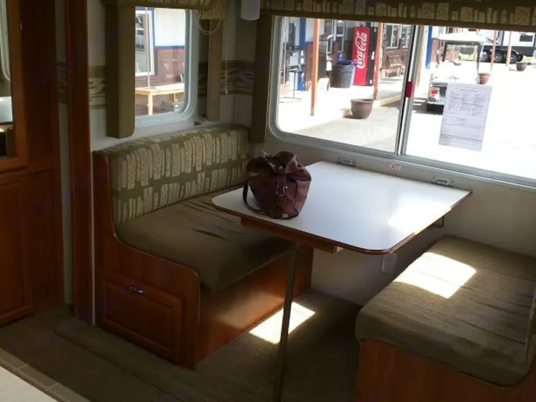 Queen size bed, sofa bed, dining area that pops out into more bedding and bunk beds. A pop out on the side makes it extremely spacious inside.