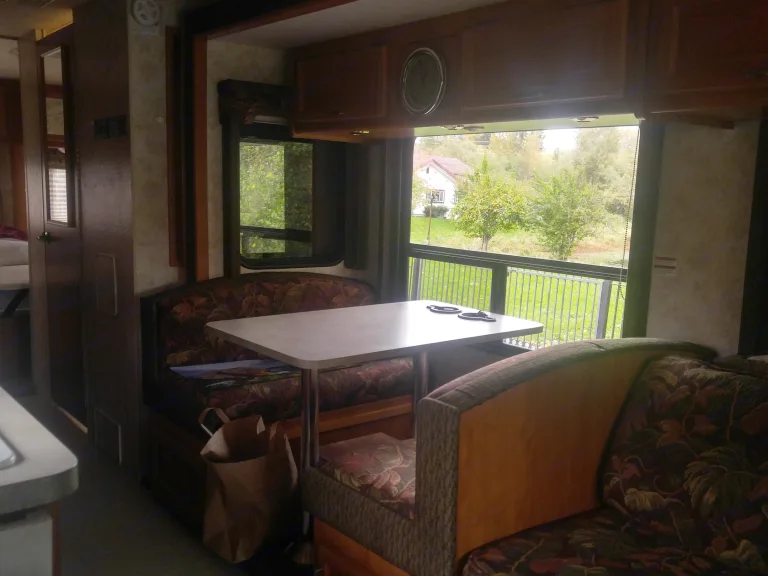 Good condition, clean. New carpeting, solar/ inverter (enough to run appliances, but not AC). Kitchen, shower. One slide out. Everything is fully functional.