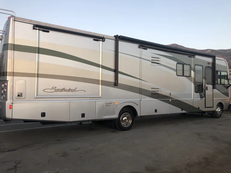 Welcome to the Ramey Rig, a true home on wheels, where you can enjoy your next road trip in comfort. This 2006 Fleetwood Southwind is a 37 ft long Class A with 3 slide-outs and 84'' tall ceilings provides plenty of head room and spacious environment throughout the entire vehicle. You'll have the conveniences of a home with you when travel on your next vacation.Our RV features a fully equipped kitchen including an 8 cu. ft. Dometic double door refrigerator/freezer, dual sink, stove, oven, large microwave, and pull out cutting board. The dinette provides comfortable seating during meals and the additional bar height table is the perfect place to lounge the galley area. The dash integrated computer workstation and bedroom suite vanity make working remotely a breeze.Sleeping is a dream in the Ramey Rig. You can wind down from your day in the bedroom suite which features a Restonic queen bed with pillow top mattress. Under-bed storage and the bedroom wardrobe will provide plenty of space to store all of your belongings. Other sleep options include a full size bed when you convert the dinette, and a queen-bed in the pull out sofa. Linens and extra mattress pads can be included for an additional cost (check outlet add-on section).The spacious bathroom comes equipped with a skylight in the shower, roof fan for ventilation, vanity lighting, residential-sized sink, as well as, a mirrored medicine cabinet for storing your toiletries.There is tons of storage space underneath the rig with several storage compartments to hold all your gear. Other features include: Air conditioner, heater, generator, 10 gallon water heater, roof fans in galley area and restroom, new tires, rear camera, awning, home theater entertainment system with surround sound.Don't want to drive? We can deliver the RV to local locations for you for an additional cost. What's includedEverything you will need to hook up to your campsite for water, electric and sewage is included and will be on board for you.Please see the Add-on section for more options.RecommendationsVentura County offers so many wonderful locations to camp. Our beautiful coastal mountain range allows for amazing camping experiences. Some of our favorites include Rincon Beach and Lake Casitas. Other things to noteThere is no smoking or pets allowed while aboard the Ramey Rig.If the RV is returned with any kind of smoke odor or any evidence of a pet was aboard, it may result in a forfeiture of of the security deposit, plus any additional costs incurred in cleaning and/or repair. No climbing on the roof of the RV. The RV needs to be returned in similar conditions as it was when the rental period began. If issues come up, or something is not working properly, please notify us as soon as possible.