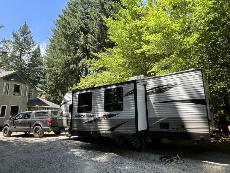 Adventure Awaits with Our Autumn Ridge Trailer!Ready to escape into the great outdoors? Our 30-foot Autumn Ridge travel trailer is your cozy home away from home! Whether you're chasing mountain views, lakeside serenity, or open-road freedom, this half-ton towable trailer makes every trip seamless.Spacious & Comfortable – Sleeps your crew in comfort with two bunks, a fold-out couch, dinette breaks down to a small bed, and a king primary bedHalf-Ton Towable – Easy towing means you can hit the road hassle-freeFully Equipped – Kitchen, bathroom, and cozy sleeping spaces ensure you're set for adventureAffordable Rates – $97 per night, with flexible rental optionsConvenient Add-Ons – Cleaning service $75), generator rental $50 per day), and tow bars & hitch receivers ($30 per day)Delivery & Setup Available – Up to 75 miles for an additional feeRental Bedding Available – $20– per set, so you can travel lightStay Connected – Starlink satellite internet available for $50 per day*Make your trip even better with generator rental options to keep everything powered up!Don't miss out on the perfect setup for your next adventure—book your rental today!