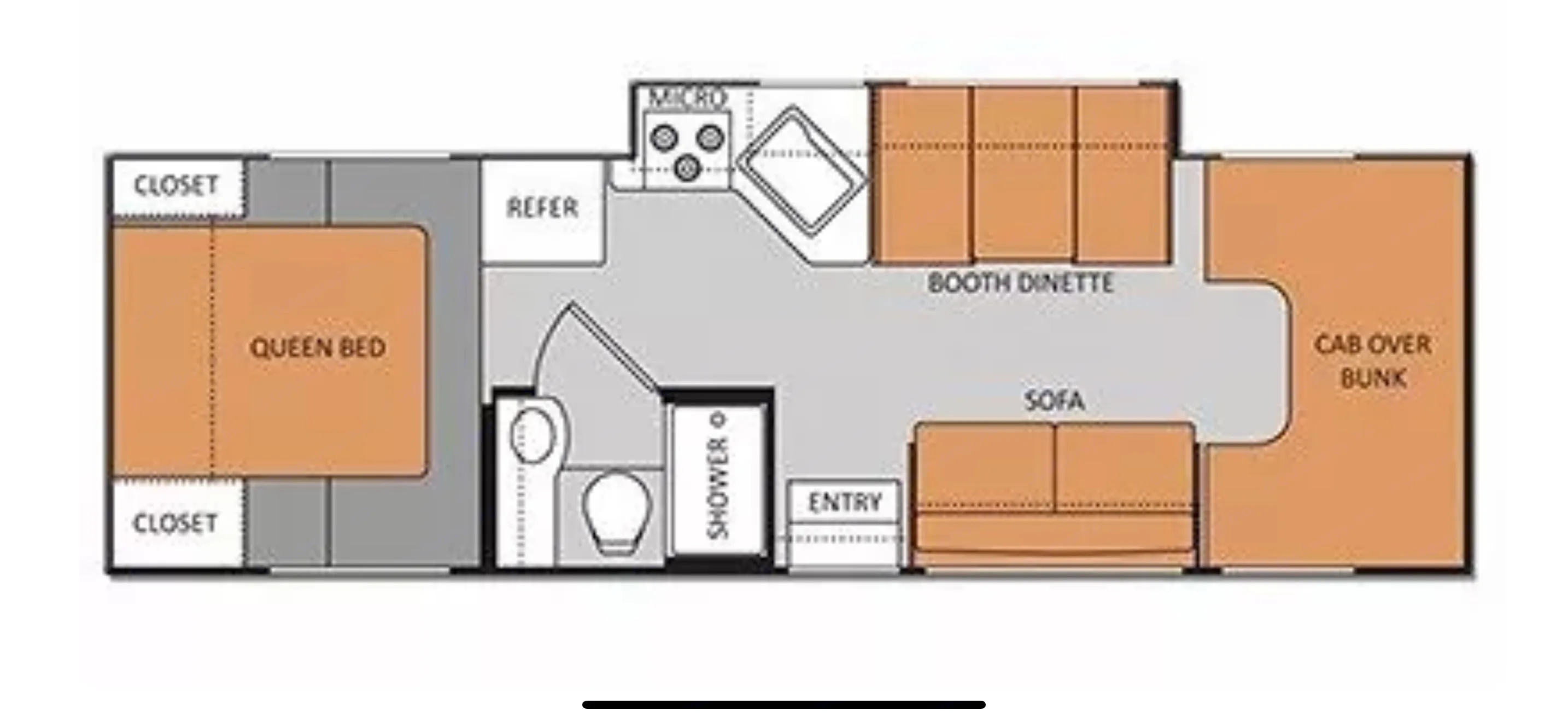 5Jeff was great to work with, very accommodating and always accessible and responsive which is super important when you are traveling far and new to RV camping. This is a great RV, very spacious inside, all the amenities. Lots of room with pop-out, good size shower, very comfortable and roomy bed in the back. Both kids fit up top and loved the bed over cab. Pop-up windows and sliders both sides. Fridge and freezer have plenty of room and work great. Inside stove cooks extremely fast with 3-burners. Came stocked with DVD movies which was a huge plus for our kids. I highly recommend this vehicle.