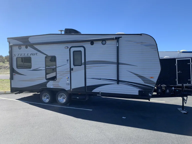19ft Toy Hauler. Fits up to 6 people. Has electrical outlets for campsites. A/C and heater overhead. Indoor/outdoor speakers. Outdoor rinse off station. Extra storage. Perfect for the weekend!Generator available for rent.