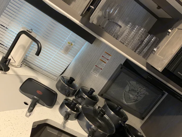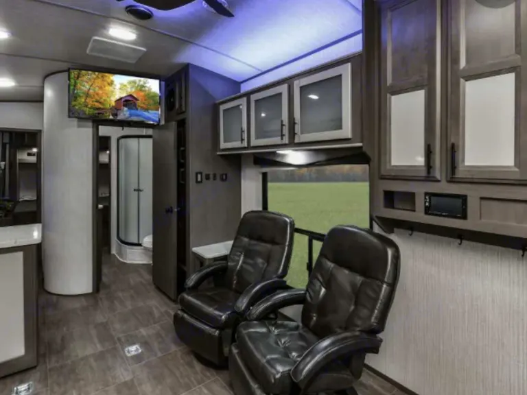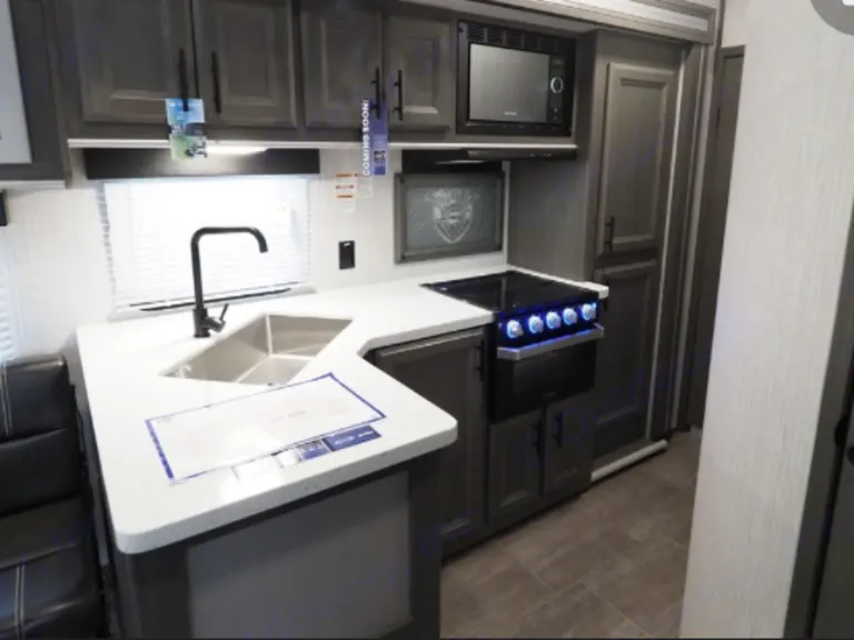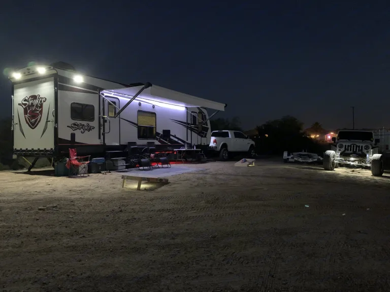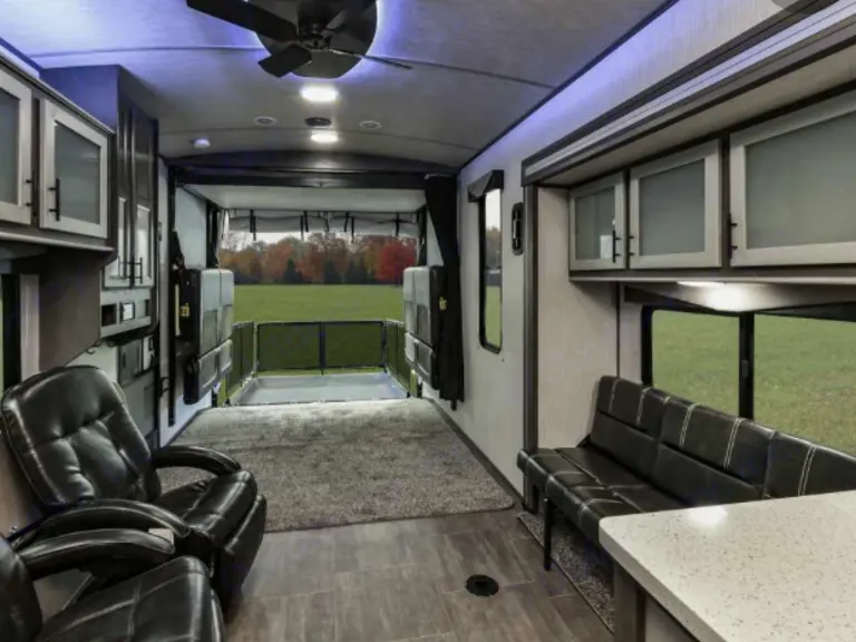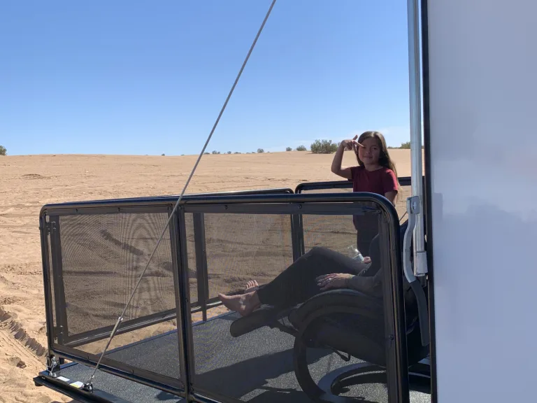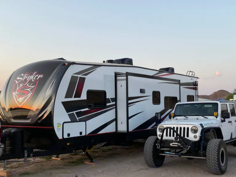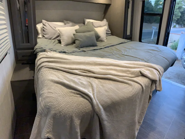 Hello and if you have any questions, please reach out to me at [phone number removed]s I have a brand new super modern 2020 toy hauler with rear patio. Large slide out which makes it very roomy with high vaulted ceiling’s and ceiling fan. It is also equipped with two queen beds which one turns into dining area. The 16 foot cargo will easily hold a four seater Rzr or Can-Am. Front bedroom has a king size bed and its own private door to outside. It comes fully stocked with dishes, pots, pans and silverware. It even comes with a blender, toaster and Keurig machine. We also throw in clean towels and bedding. Not to mention that it has a onboard 5500 Owens generator to power up the two AC units. The overall length is 34’ long and I will delivered and picked up for your easier convenience. This toy hauler is your home away from home and I promise you will not be disappointed.What's included2-chairs, 2-outside rugs, 1-table, bath towels, bedding, coffee maker, 30 gallons of 91 octane fuel (renter is charged on what’s used) and fully set up.RecommendationsThis trailer is ready for all seasons and all types of camping. Whether you wanna beach camp or go to the desert this is the one. This trailer is also a perfect size for most RV parks as well.Other things to noteThis is my home away from home so I will not allow smoking or pets in this trailer. All I ask is for it to be taken care of like it’s your own pride and joy. And make good family memories.