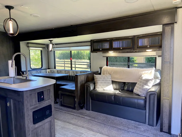 There is a lot to love about this fully furnished 2020 Mallard M33! You have an Island sink, master bedroom, separate bunk house room with TV for the kids or guests, and large awning with outdoor kitchen. Don’t take my word for it, come see for yourself!Delivery for mileage fee assessed at time of rental.