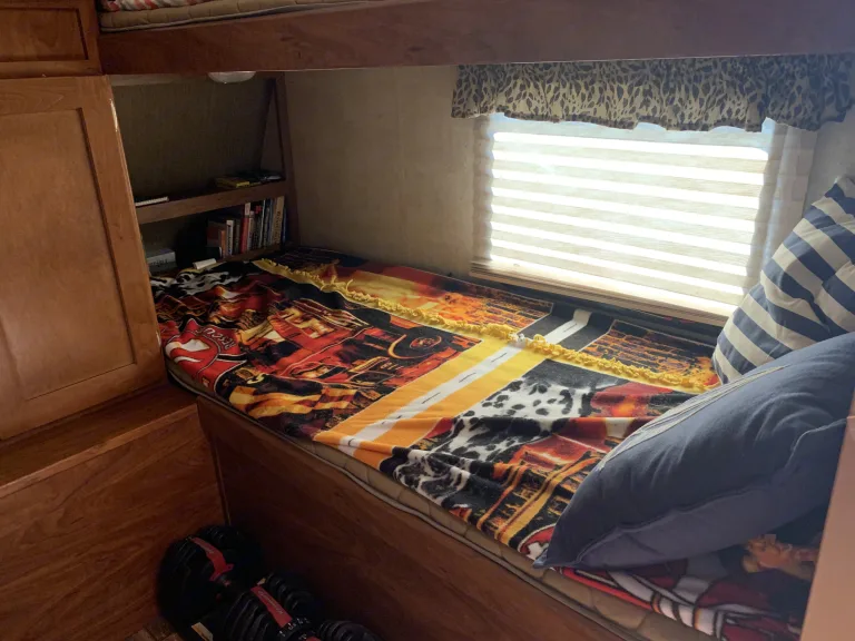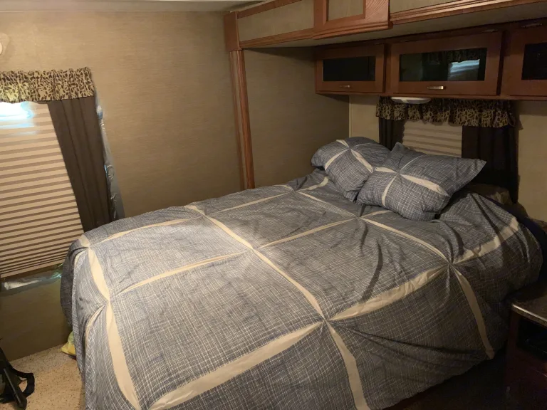 Great living space with lots of room for the whole family! A queen size bed in the back of the camper in a private room allows privacy for adults/couples, while two sets of bunk beds in the front (4beds) allows the kids/guests to have an area to themselves. Equipped with refrigerator, freezer, stove, oven, heater, air conditioning, and full bathroom. What's includedLinnings for the queen bed and 4 bunk beds. If you choose to use the pull out sofa you will need an air mattress and linens to go along with it.