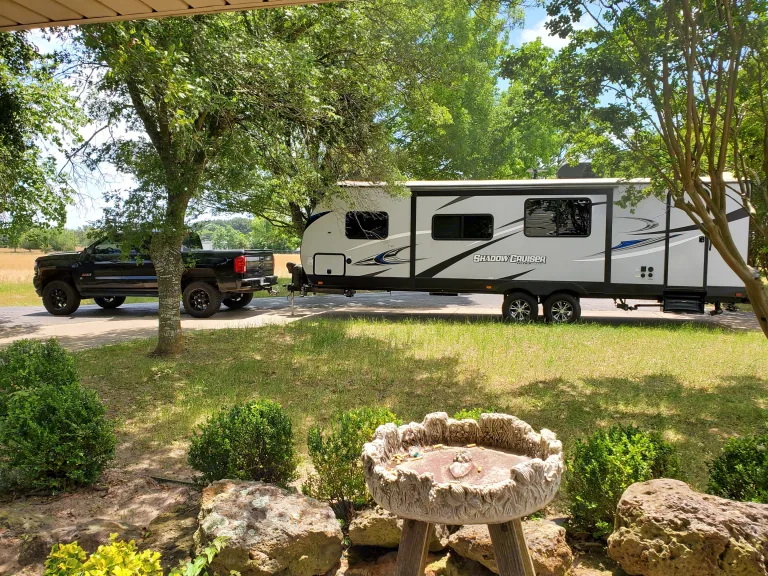 Very nice and spacious bumper pull 31ft RV w/ king size memory foam bed, bunk beds, leather sofa/pullout, 2 slide outs, outdoor speakers and awning w/ LED lighting, outdoor kitchen and mini fridge. What's includedcamping chairs, silverware