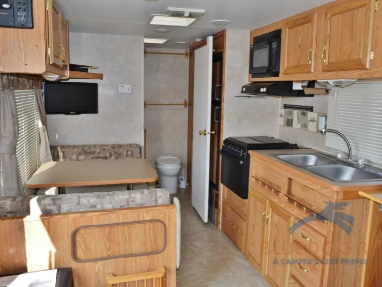It's a very clean and spacious camper fully furnished with all the amenities including a full kitchen, a ton of storage space, a shower with tub, a queen size memory foam bed and a flat screen tv with antenna and DVD player. Just got a brand new awning so you're able to eat outside in the shade and its large enough to sleep a minimum of 6 adults.