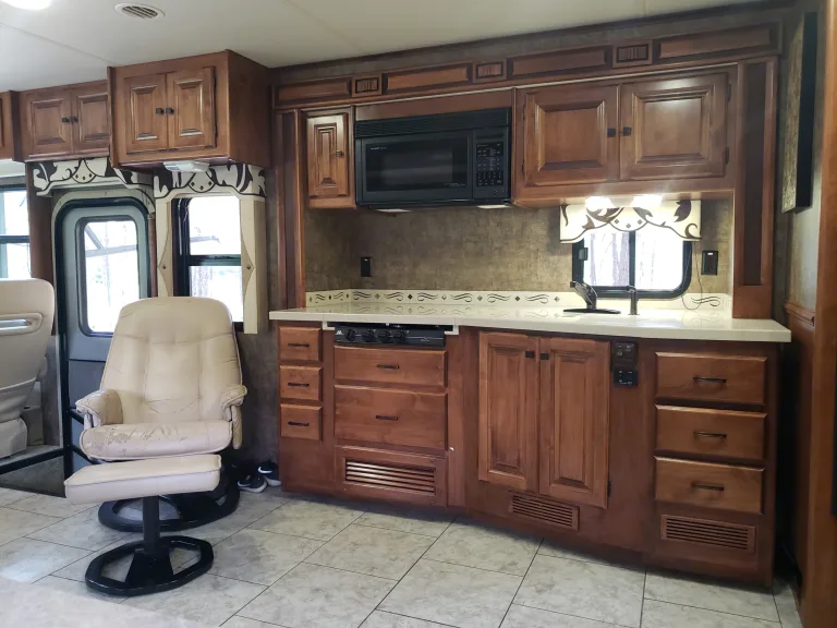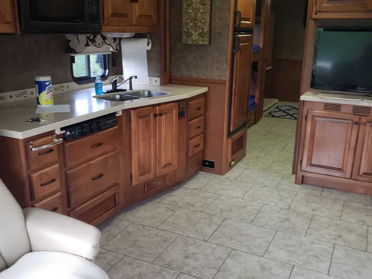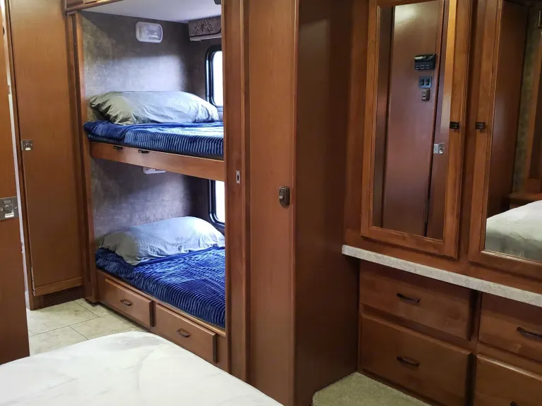 Delivery only. 2012 Tiffin!! This is a nice coach with lots of sleeping. We will bring it to your campsite within 75 miles and have it set up for you give you a tour and let you vacation stress free. We prefer not allowing drivers at this time. No delivery to houses only campsites. Full kitchen available with convection microwave oven. 2 rooftop AC units to keep you cool, 6 TVs. Queen walk around bed with bedding. Bunk beds with dvd players. Couch to double size mattress and dinette that becomes a bed. 4 opposing slides so you will have lots of room. Pet friendly with a fee. No awning usage. We have a canopy available. Unit to be returned as clean as rented fees for not doing this start at $300.00.