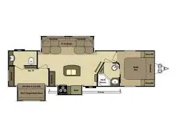 This is a wonderful travel trailer in excellent shape. Everything works like new. 3 slides. We have converted the bunk beds to a single twin. There is a 1/2 bath off this bedroom. So, this is a two bedroom, two bathroom