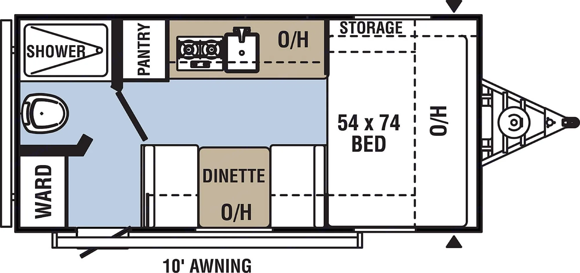 This camper is very cozy, modern, and perfect for a weekend getaway! It has off-road tires a retractable awning with led’s that make it comfortable to sit outside at night! It Has an outside solar hookup as well! This camper runs its hot water with one propane tank. The air conditioner and heat work very very well! It has a gas stove top and microwave as well! Also included a shower and bathroom. Lots of storage space all around and the bed lifts up for more storage, or can be reached from the outside doors to store stuff!