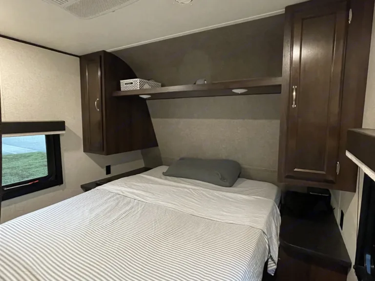 Enjoy a great camping experience with the whole family! This camper can comfortably sleep 6-8 people between the master bedroom, bunkhouse, and convertible dinette and couch! Cold AC or a warm furnace, this camper is comfortable in any weather. Full kitchen, full bathroom with a tub for little ones, two TVs and internet access available!Delivery available upon request!What's includedFresh linens, camping chairs, projector with screen, TV with roku access, internet hotspot (Verizon / available in most areas), ice maker, cookware, dishes, etc. RecommendationsGreat for use in RV parks with full hook ups - have all the comforts of electricity and running water! Other things to notePets are welcome, but please walk them on a leash to avoid any messes! Absolutely NO SMOKING :)