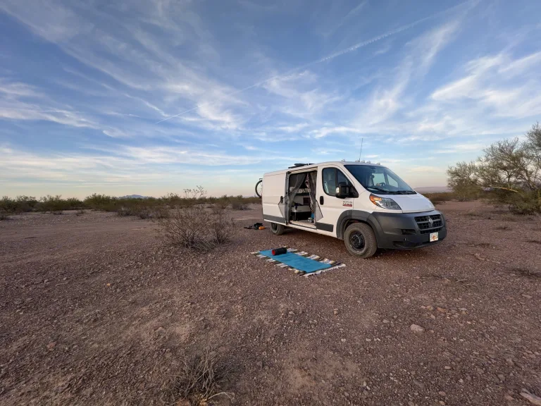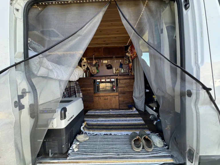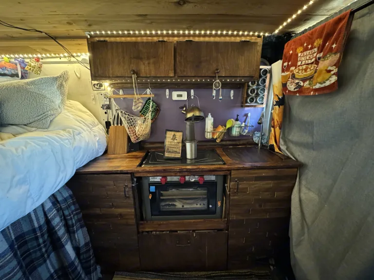 El gaton is the perfect rig for your adventure! It has so much character. It is a custom built Dodge ram protester low roof 1500 built out myself and has a very homey/ cabin like feel. This van has an internal Goal Zero power system that is fueled by roof-top solar panels and is connected to the alternator to charge while you drive. The power station runs the LED lights that have three different color settings and are dimmable. There is also plenty of juice to run the refrigerator and power your electronics with 12V and AC/DC. The van has a combo two-burner stove with an oven (personally love making cookies, plus it will heat up the van on cool evenings!!) There is a foot pump sink with a gray water tank as well. This van also has a built in Webasto heater so you won't have to worry about getting cold. The bed is a super comfortable memory foam with a down comforter. There is plenty of storage space underneath the bed, and in over-bed cabinets. There are also kitchen cabinets to store food so you can cook as much as you would like. The van drives great, it is a smaller van than some making it so much more manageable on the road and to park. There is a bluetooth radio as well. It is perfect for your holiday road trip!What's includedFresh linens and towels, two camping chairs, camping table, eco hammock, emergency flat tire repair, two-bike bike rack, cookware, utensils, basic spices and cooking supplies, aero-press for coffee, kettle, baking pans, trash and recycling receptacles. Sky harbor pick up by request.Other things to notePets are allowed as long as they are well behaved and won't chew, claw or pee inside. No smoking please! $0.55/ miles o er 150 mile daily limit