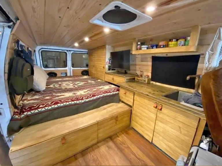 Cozy wood interior with a classic diesel engine. The interior is fully insulated behind the wood so it's great for a trip up to big bear and mammoth. Nice infinity speakers in rear and some sony outdoor speakers in the front which can be pulled out. Includes Thule box and yakima racks.