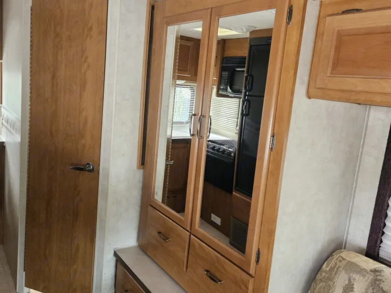 2005 Fleetwood Tioga 23E RV. Easy to drive, park and setup. Large enough to sleep 5 comfortable and small enough to get into National and state parks. There is 35 Gallons of fresh water, 36 gallons of gray water and 35 gallons of black water holding capacity. The water heater supplies 6 gallons of hot water and the propane tank hold 14 gallons. The fuel tank hold 55 gallons of regular gasoline. This coach is built on a Ford E450 chassis and powered by a Ford Triton 6.8L V10 HP Engine with only 31,000 miles! Kenwood DNX576S navigation and entertainment system with apple car play and Andriod auto. This coach has a propane furnace to keep you warm in the winter and ice cold 13,500 BTU AC for the summer. What's included4 camp chairs, cookware, utensils, toaster. Linens, blankets and pillows upon request. RecommendationsWe are located between Encinitas and Carlsbad California. Moonlight beach is 4.3 miles away, Lego land is 8.9 miles, Seaworld is 27 miles, San Diego zoo is 28.6 miles, Balboa park is 26.2 miles. Joshua Tree national park is 145 miles. Disney California Adventure Park is 70.6 miles. Travel into Mexico is not recommended or permitted.Other things to noteOur coach is non-smoking and does not permit pets. Our daughter has allergies so thank you for understanding.