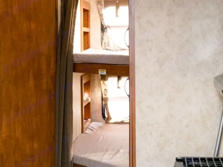 Create lifelong camping memories for you and your family the Easy way.Our 2011 Keystone Bullet is kid-friendly and comfortably sleeps up to 8-10 people. Featuring a queen-size bed for the adults, two full-size bunk beds for the kids, a foldout sofa bed for more kids and/or their friends-- our travel trailer is spacious and comfortable.You'll enjoy the ease of just arriving at your campsite with everything done for you. All hook-ups attached-- water, sewer, and electricity (assuming you book a full hook-up site), slide-out and awning extended, fridge on, and the outdoor rug in place.Lots of cabinets and drawer space for all your camping necessities. TV, DVD Player, AM/FM Radio, and outdoor speakers will make downtime at the site fun for all.