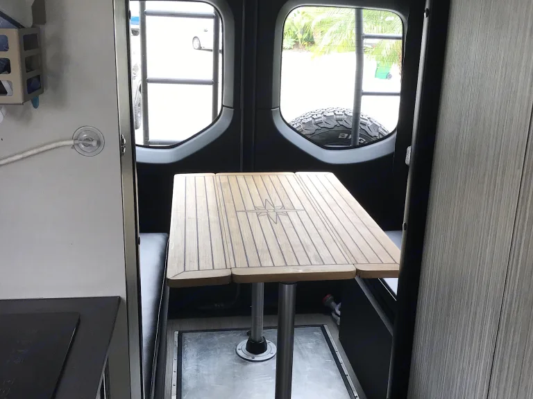 -bench seating (with storage) and a removable table in the rear cargo areaWhat's includedCamping chairs, all pots and pans, utensils and double or single “Cabbunk”.